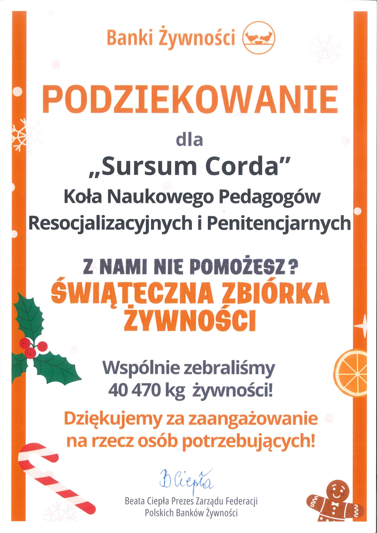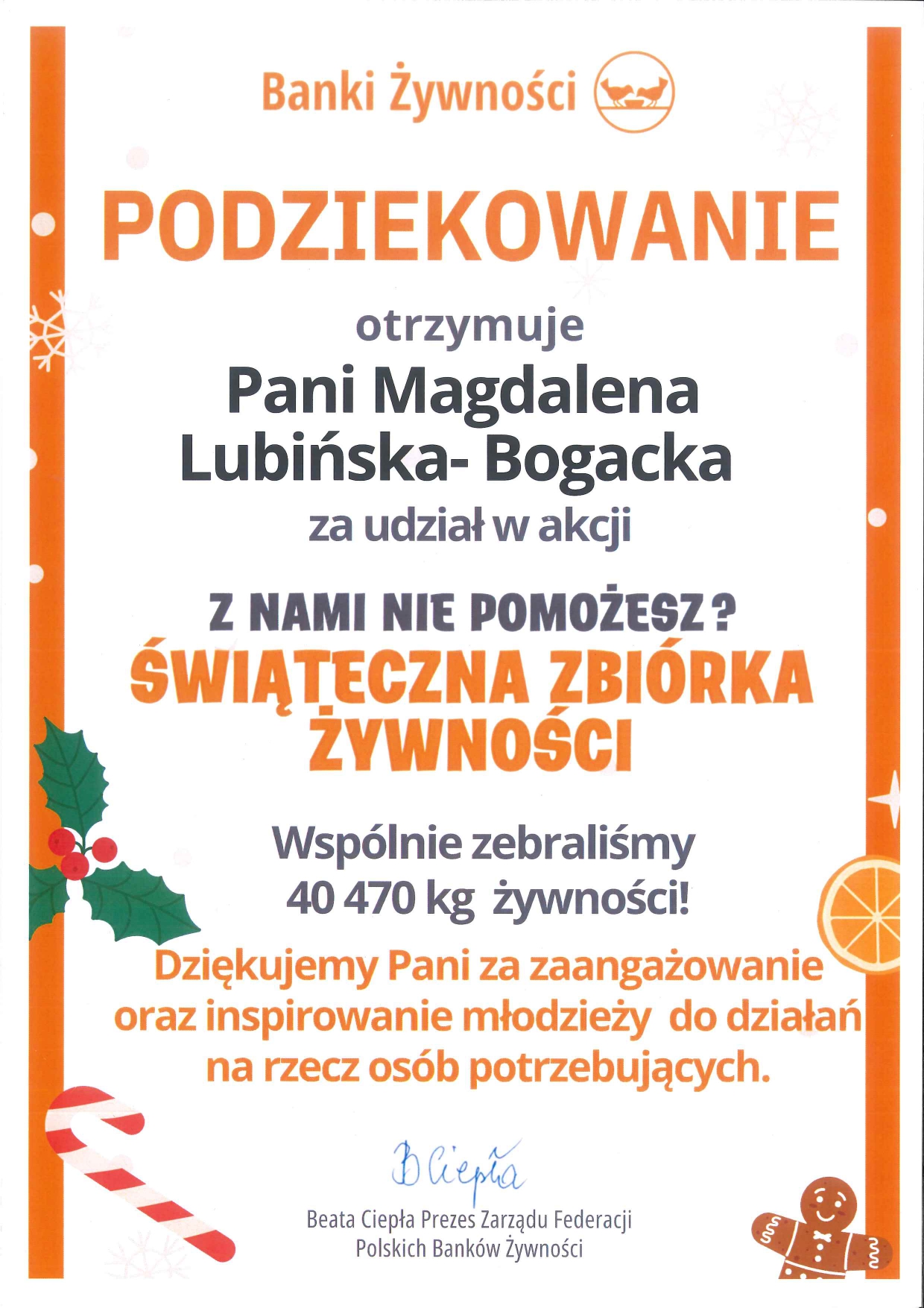 Podziękowania od Federacji Polskich Banków Żywności