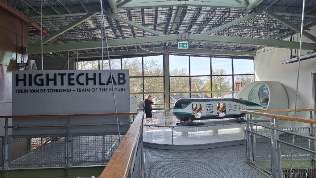 Foto 29. Delft Hyperloop 1, 2015r. wśród eksponatów Spoorwegmuseum, Utrecht (autorzy – zespół młodych inżynierów z uniwersytetu w Utrechcie)