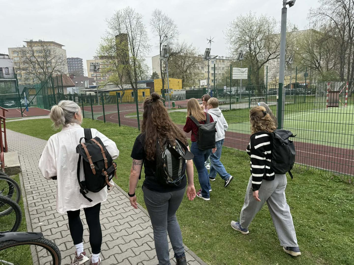 Fot. 12 Studenci z Marnix Academy podczas oprowadzania po terenie szkoły przez uczniów.