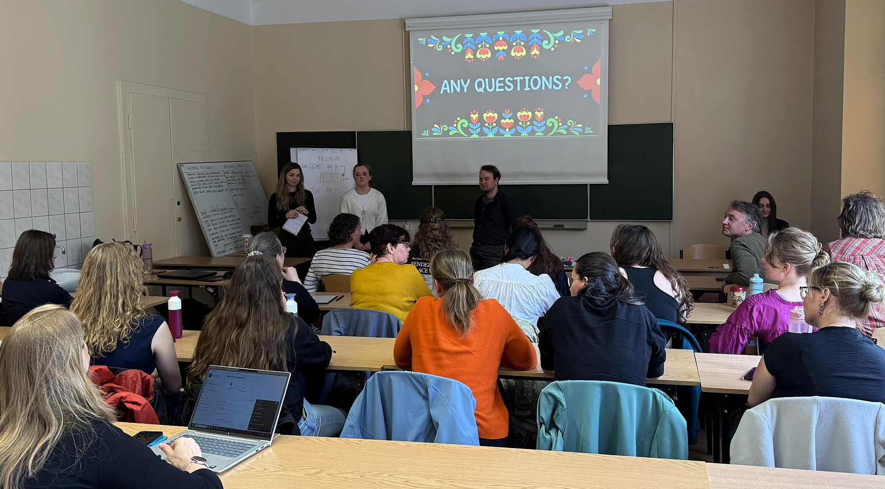 Foto 6. Sesja pytań i odpowiedzi po prezentacji studentów UKEN na temat polskiego systemu edukacyjnego