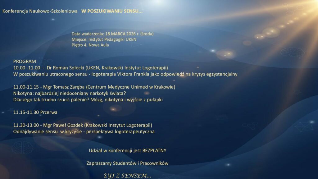 Członkowie Koła Naukowego Pedagogów Resocjalizacyjnych „Sursum Corda” oraz Koła Naukowego „Nauczyciel z Pasją” przeprowadzili warsztaty szkoleniowe dla pracowników Specjalistycznej Poradni Psychologiczno-Pedagogicznej pn. „Krakowski Ośrodek Kariery” przy ul. Wacława Popławskiego 17 w...